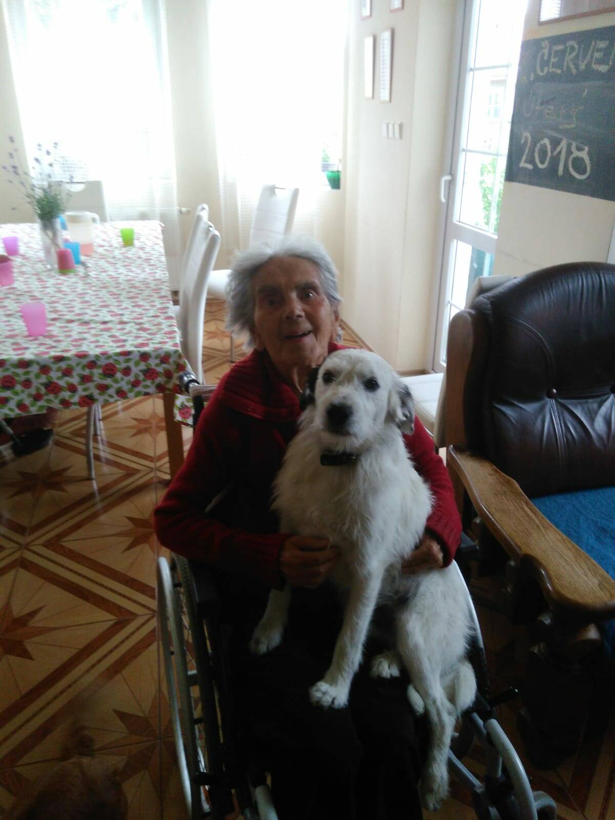 V našem domově používáme prvky canisterapie a s radostí se účastní všichni naši klienti. Vždyť takové „pomazlení“ s němou tváří prý prodlužuje život. Vztah mezi psem a člověkem je čistý a bezpodmínečný. V průběhu terapie je všude přítomná láska, důvěra a vnitřní klid. Pro mnoho našich klientů je tento psí terapeut stejně důležitý jako lékař. Díky jeho návštěvě se vytrácí z mysli i ze života chmury a negativní myšlenky a klient, který zrovna terapii podstupuje má v očích zář a na tváři úsměvu. Stejně jako paní Magda, která si naplno užívá psí společnosti.